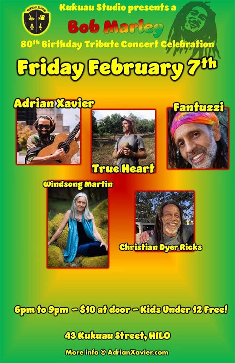 Bob Marleys 80th Birthday Tribute Concert , 43-D Kukuau street, Hilo